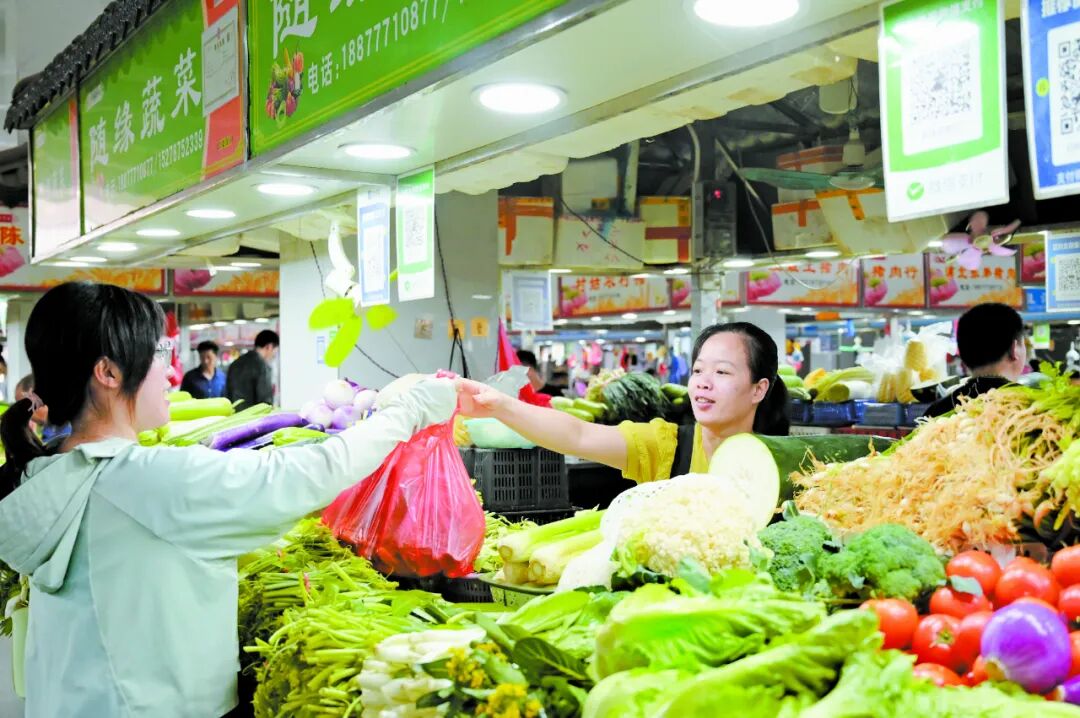 市民在整洁的农贸市场内购物。融媒体记者 陆燕 摄