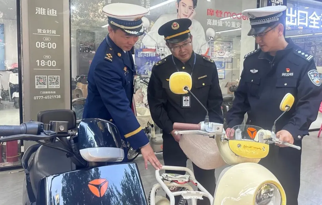 为推动新版强制性国家标准《电动自行车安全技术规范》(GB 17761—2024)落地实施,整治电动自行车非法改装突出问题,强化电动自行车质量安全监管,护航群众出行安全,近日,钦州市市场监管局联合市公安局、消防救援支队深入各县区开展打击电动自行车非法改装违法行为检查。