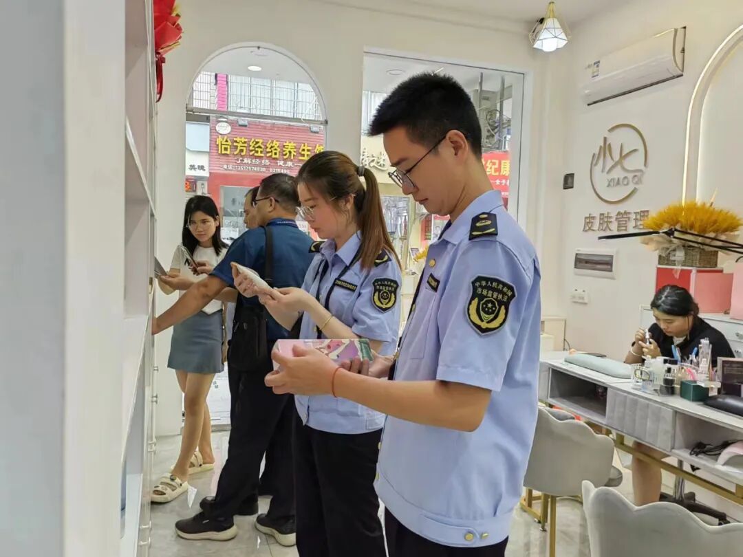 近日,浦北县市场监督管理局组织开展化妆品安全专项整治行动,旨在解决当前我县化妆品经营环节存在的突出问题,严肃查处、打击化妆品经营过程中违法违规行为,促进化妆品经营秩序持续好转,保障人民群众的用妆安全。专项检查重点是强化督导、形成威慑,做到全覆盖监督检查,检查中如发现企业存在违法违规行为,将采取告诫、约谈、限期整改、停业整顿等方式严肃处置,为消费者“美丽消费”保驾护航。(图/文:胡爱洁)