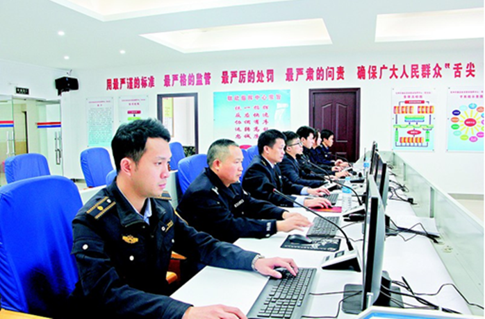 这是钦北区在创建广西食品安全示范城市过程中,为加强食品安全监管,推动食品执法联查联动,而创新的一个监管举措。目前,该中心已完成天花、静电地板、背景墙等室内场所装修,并安装好了大屏幕、指挥平台,并与电信、系统开发方铺设好线路,将千千万家超市、九联食品公司及部分学校食堂、食品生产企业等39个单位纳入监管之中,试点安装探头,目前为止全部可进行调试运行。