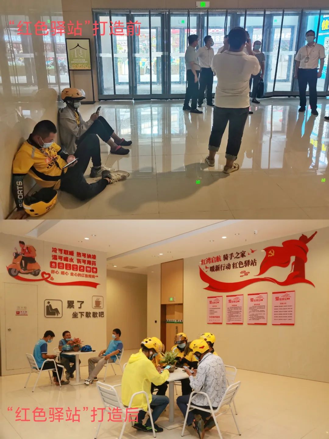 “这个服务站功能很齐全,渴了有水喝,热了可以吹空调,还能享受秒换电动车共享电瓶服务,不耽误工作。”钦州美团平台一线骑手、党员小杨竖起了大拇指。据悉,在一次新业态外卖群体党建调研中,调研组经过一段商圈楼道时,发现很多外卖小哥席地而坐休息,而楼道宽阔,完全可以为小哥提供便利。市“两新”组织党工委、市市场监管局、市总工会联合打造“红色驿站”,整合资源,依托各级党群服务中心、工会之家、党建工作指导站、大型商圈、街坊公舍、网格小区党支部等阵地,为外卖送餐员提供学习、休息、饮水、上网、充电、进楼道等服务,目前已建成5个“红色驿站”。让流动的外卖小哥有专属的歇脚地,把‘家’建设得更好,是钦州市坚持“组织共建、阵地共享、资源共融”机制,以精准化的“暖”“新”“小”服务,夯实新业态新就业群体的归属感,激发他们服务社会回报社会的价值感。